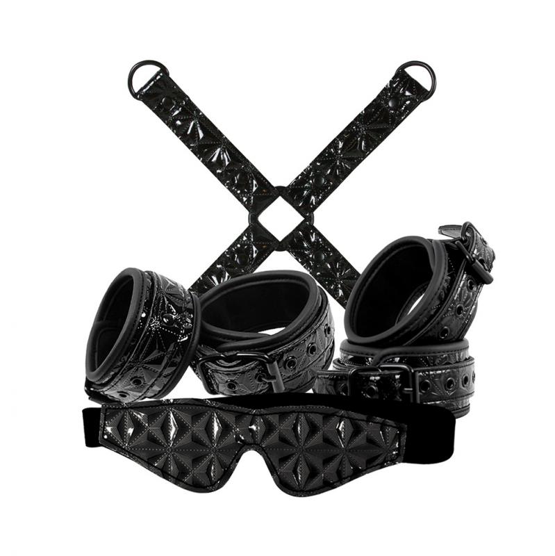Pakkaus sisältää kaiken tarvittavan BDSM-nautintoon, ylelliset sitomistarvikkeet, jotka miellyttävät sekä aloittelijoita että kokeneempia rakastavaisia. Settiin kuuluu nilkkakahleet, rannekahleet, hog tie ja tyylikäs silmämaski. Kaikissa Sinful Bondage Kitin tuotteissa on trendikäs tikattu pinta ja säädettävät kiinnitykset.