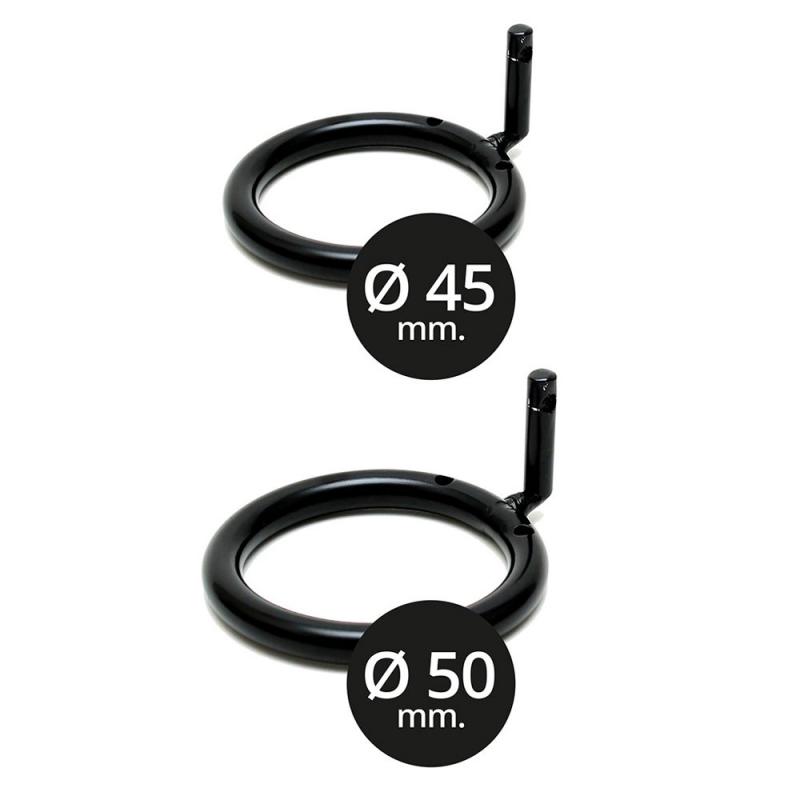 Sisältää 1 lukon kahdella avaimella ja kaksi erikokoista rengasta, 45mm ja 50mm.
