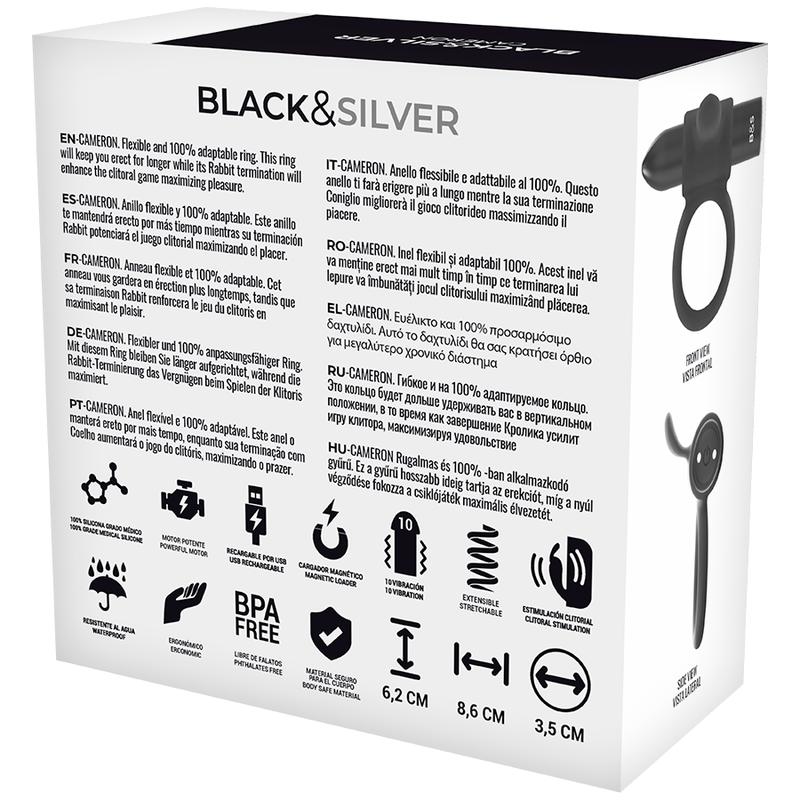 Tässä tulee erityisen makea lahja parhaalle ystävällesi! Tämä upea miesten stimulaattori on naamioitu penisrenkaaksi ja haluaa makeuttaa sydämesi hetkiä. Black&Silver Rengas voi parantaa nautintokeihääsi ja antaa sinulle ja rakkaallesi kihelmöiviä ärsykkeitä. Silkkisen sileällä, syvänmustalla lääketieteellisestä silikonista valmistetulla pinnallaan Black&Silver vie sinut aistilliseen hurmokseen heti, kun laitat sen päälle. Rengas venyy miellyttävästi ja mukautuu siksi kaikkiin kokoihin, vain mahtuakseen ja antaakseen nautintoa peniksellesi.
