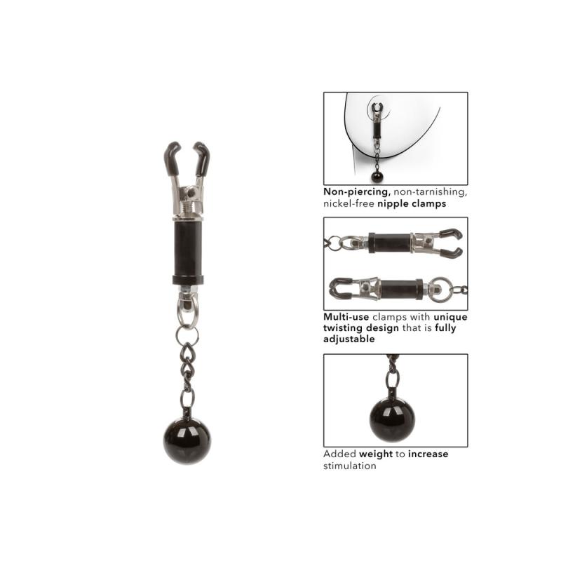Koe kohotettu aistimus kahdella säädettävällä nänniklipsillä, ainutlaatuisella kiertävällä muotoilulla ja heiluvalla painolla. Kiinnitä tuhmat klipsit kehoosi ja nauti jokaisesta stimulaation aallosta.