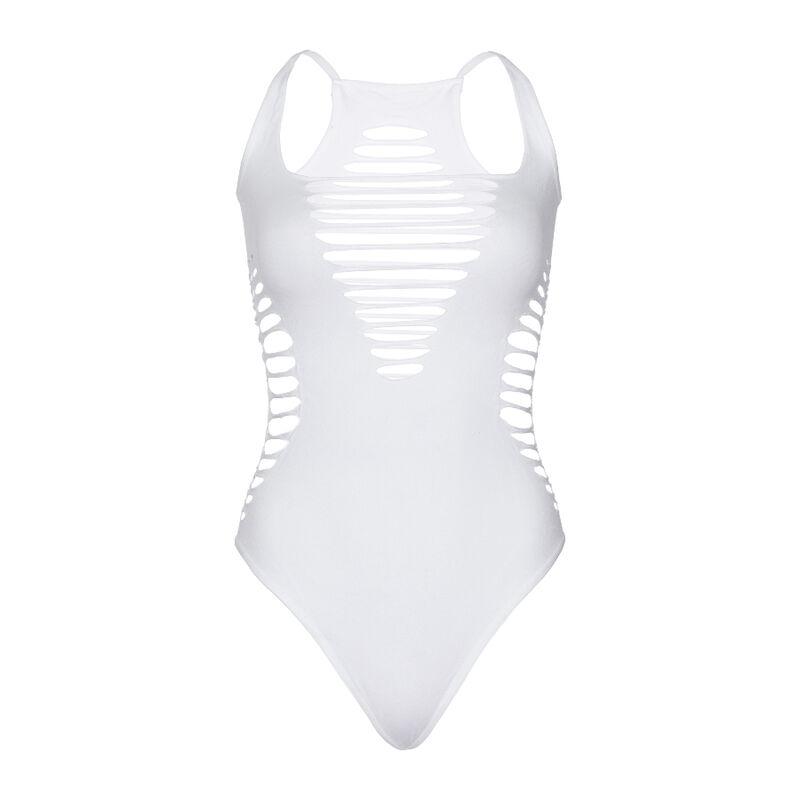Shredded racerback lisää tyyliä ja omaperäisyyttä muotoiluun, luoden visuaalisesti mielenkiintoisen ja houkuttelevan yksityiskohdan. Tämä ominaisuus ei ainoastaan lisää muotielementtiä bodysuitiin, vaan tarjoaa myös mukavuutta ja liikkumisvapautta, ihanteellinen aktiivisiin toimintoihin tai käytettäväksi toppien alla.