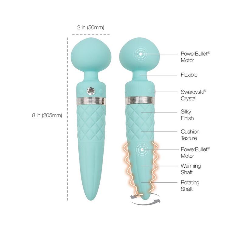 Sultry by Pillow Talk -hieromalaitteessa on sileä pyöristetty pää ja se tarjoaa voimakkaita värinöitä. Siinä on kapeneva sisään asetettava kahva, joka pyörii 360 astetta uskomattoman G-pisteen stimulaation saavuttamiseksi. Sultryn pyörivä varsi tarjoaa myös ensiluokkaisen lämmitysominaisuuden lisämukavuuden ja realistisuuden saavuttamiseksi.