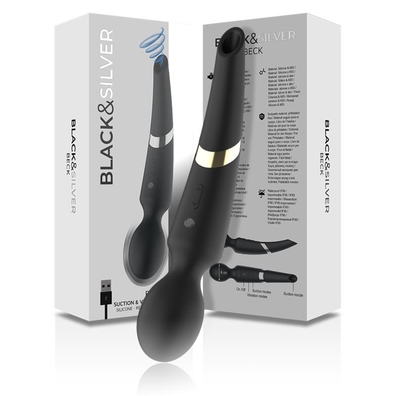 BLACK&SILVER? Beck istuu mukavasti käteen käytön aikana ergonomisen muotonsa ansiosta; se on myös helppo ottaa mukaan minne tahansa viemättä paljon tilaa. Leikkisä muotoilu sopii erityisesti aloittelijoille tai kokeneille käyttäjille. Tämä paineaaltowand-vibraattori on valmistettu kehoystävällisestä silikonista ja on erityisen hygieeninen ja hellävarainen iholle.