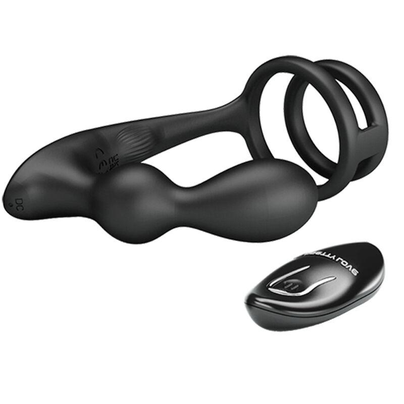 Tämä kaukosäätimellä ohjattava penisrengas anustulpalla on yhdistelmä penisrengasta ja värisevää anustulppaa, joka pysyy tukevasti paikallaan.