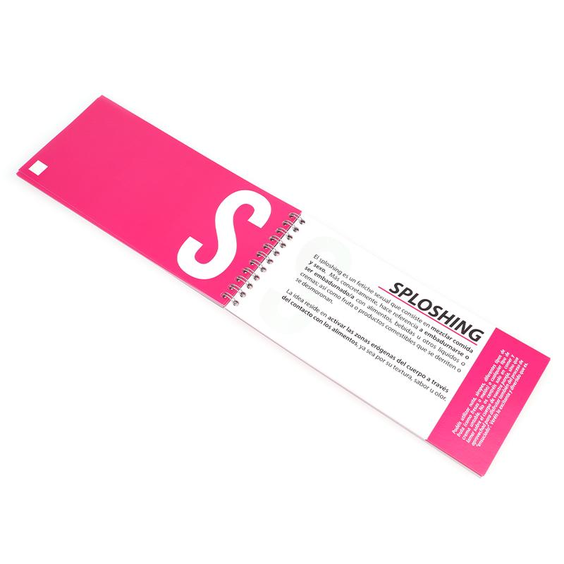 ABCSEX on järjestetty pienen aakkoskirjan tapaan. Jokaiselle aakkosen kirjaimelle on oma sivunsa, ja jokaiselta sivulta löydätte: seksuaalisen termin, sen määritelmän ja tehtävän suoritettavaksi.