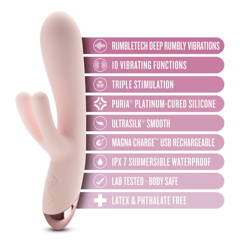 Elora on kaunis tapa tutustua kolminkertaiseen stimulaatioon nauttiessasi itsetyydytyksestä tai yhteisestä leikistä kumppanin kanssa. Löydät äärimmäisen nautinnon kolmesta eri suljetusta stimulaatiopisteestä: kaksi käsivarsissa, jotka halaavat klitorista, ja kolmas varren kärjessä G-pisteen stimulointiin. Kaikki tuntemukset välittyvät uskomattomien Rumble Tech -moottoreidemme kautta, jotka tarjoavat syviä ja jykeviä värinöitä. On aika ottaa nautinto ja hyvinvointi omaksesi ? anna Eloran olla syy leikkiisi tänä iltana!