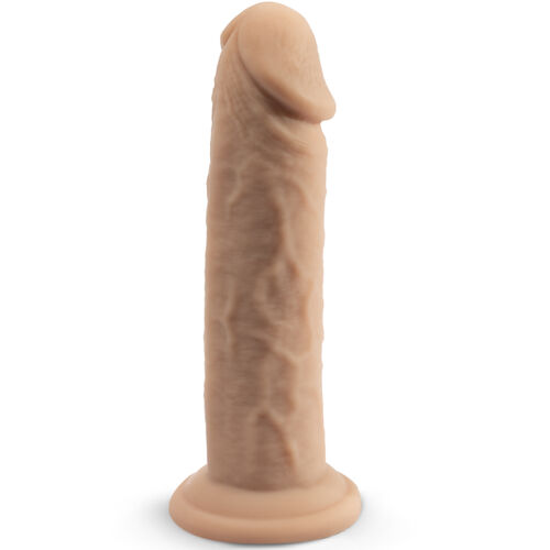 Kaksitiheyksinen teknologia yhdistää samettisen pehmeän ulkopinnan ja jämäkän ytimen, tarjoten täydellisen tasapainon joustavuuden ja rakenteen välillä. Teksturoitu suoni varressa tarjoaa voimakasta stimulaatiota, ja luonnollinen ihonsävy antaa erittäin realistisen ulkonäön.