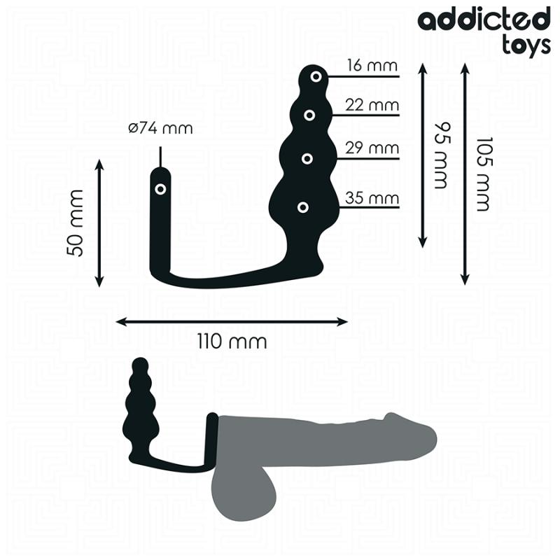 Addicted Toys Malli 5 Anaalitappi Renkaalla on vaihtoehto niille, jotka etsivät syvempää ja monipuolisempaa anaalistimulaatiota. Tässä mallissa yhdistyvät innovatiivinen tappi ja kivesten ympärille tuleva rengas, jotka tarjoavat lisästimulaatiota ja lisäävät kontrollin ja nautinnon tuntemuksia käytön aikana. Täydellinen kokeneemmille käyttäjille, jotka kaipaavat voimakkaampaa haastetta.