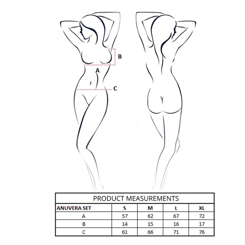 ANUVERA-setti on hienostunut alusasusetti naisille, jotka arvostavat ylellisyyttä, tyylikkyyttä ja moitteettomia yksityiskohtia. Tämä setti yhdistää pitsin herkkyyden moderniin, arkkitehtoniseen muotoiluun, joka korostaa vartalon kaaria. Kevyt pitsirintaliivi koristeellisilla olkaimilla korostaa hienovaraisesti dekolteeta, ja säädettävät olkaimet takaavat täydellisen istuvuuden ja mukavuuden koko päivän ajan.