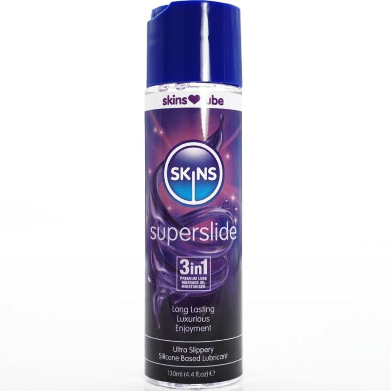 Skins Superslide sisältää 100% puhdasta silikoniliukuvoidetta, mikä antaa sille poikkeuksellisen kestävyyden. Silikoni ei vahingoita lateksia ja on täysin turvallinen sisäiseen käyttöön, sillä sen molekyylit ovat liian suuria läpäisemään ihoa tai limakalvoja. Muista, ettei silikonia tule käyttää silikonisten lelujen kanssa. Liukuvoiteiden kuningas, silikonipohjaiset liukuvoiteet säilyttävät liukuvuutensa paremmin ja pidempään kuin vesipohjaiset liukuvoiteet, ja ovat erittäin tiivistettyjä, joten pieni määrä riittää pitkälle. Ne ovat täysin vedenkestäviä, joten ne sopivat täydellisesti käytettäväksi suihkussa ja porealtaassa.