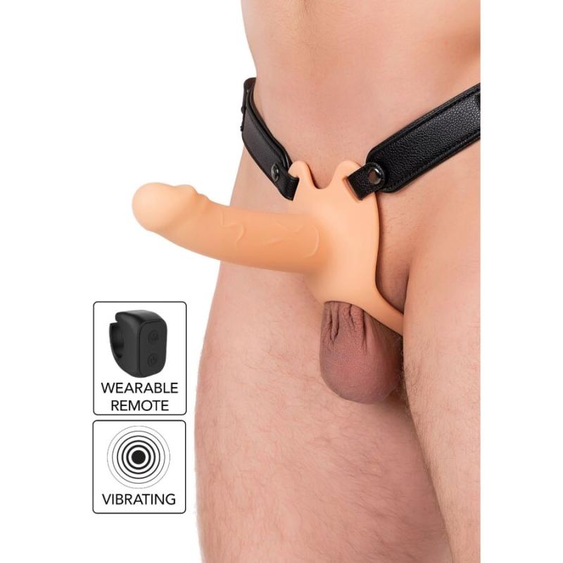 Penis-holkki erottuu erittäin realistisella muotoilullaan, joka ei ainoastaan lisää pituutta, vaan tuo myös erittäin miellyttävää lisäpaksuutta. Suurimpana kohokohtana on sen värinäjärjestelmä, jossa on 10 erilaista tilaa, joita voi ohjata kätevällä langattomalla sormus-kaukosäätimellä. Sisäinen rakenne mahdollistaa peniksen asettamisen holkin sisään, tarjoten jämäkkyyttä ja vakautta, kun taas säädettävä nailonista ja vegaanisesta nahasta valmistettu valjas takaa turvallisen ja mukavan istuvuuden kaikille vartalotyypeille, säilyttäen täyden hallinnan jokaisessa liikkeessä.