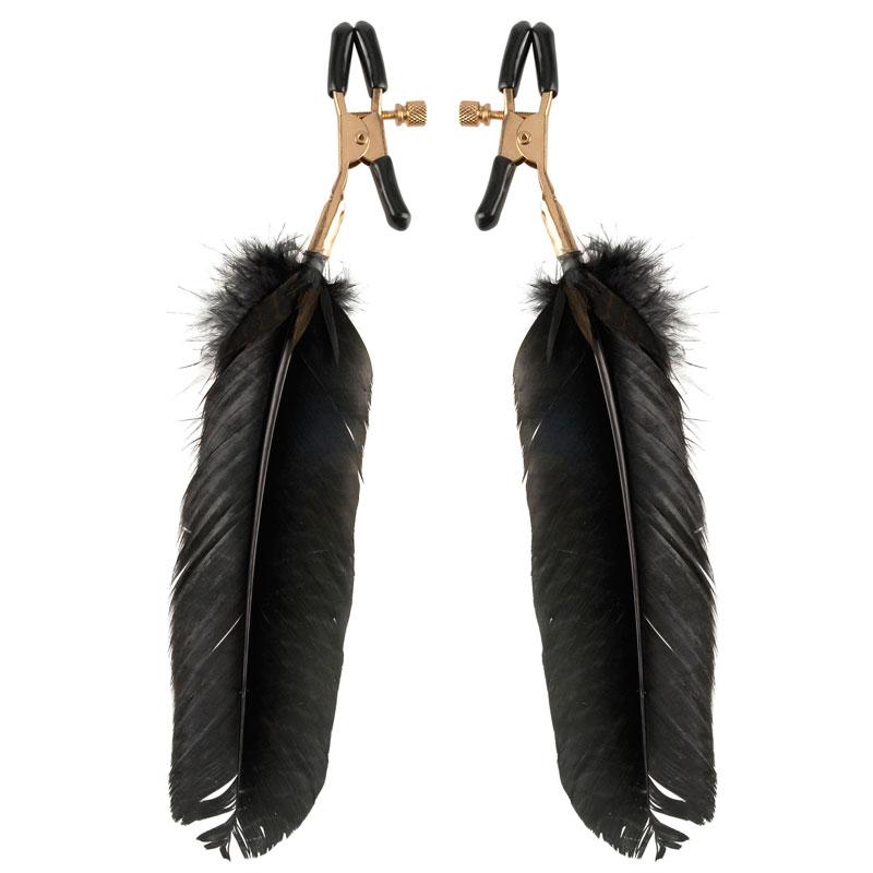 Anna nänneillesi nautintoa näillä elegantilla Fantasia Höyhenpuristimilla. Valmistettu kestävistä metalliklipsuista ja peitetty erittäin pehmeillä kumivuorauksilla poikkeuksellisen mukavuuden takaamiseksi, nämä puristimet ovat täydellisiä sekä aloittelijoille että fetissiharrastajille. Nänniin kohdistuvaa painetta voi säätää varren ruuvilla, kun taas fantasiahöyhenet kiusoittelevat, kutittavat ja kiihottavat liikkuessasi uskomattomien tuntemusten aikaansaamiseksi.